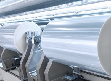Versatile plastic material perfect for it's resistance to moisture, exterior light and chemicals. Commonly used in packaging and labeling due to its tear-resistant, elastic, and transparent properties, making it suitable for various applications.